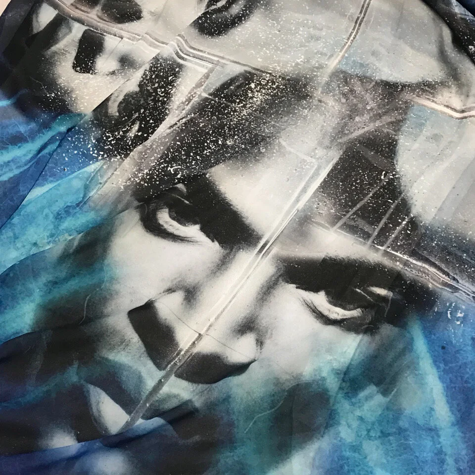 Photographer/artist Bob Packert had always wanted to create a garment that featured a large “face” as the focal point. He was inspired by a very high profile fashion/art collaboration, the #tulleportrait trench coat between John Galliano/Maison Margiela Artisanal and artist Benjamin Shine. He reached out to fashion designer AK Liesenfeld to realize that ambition.